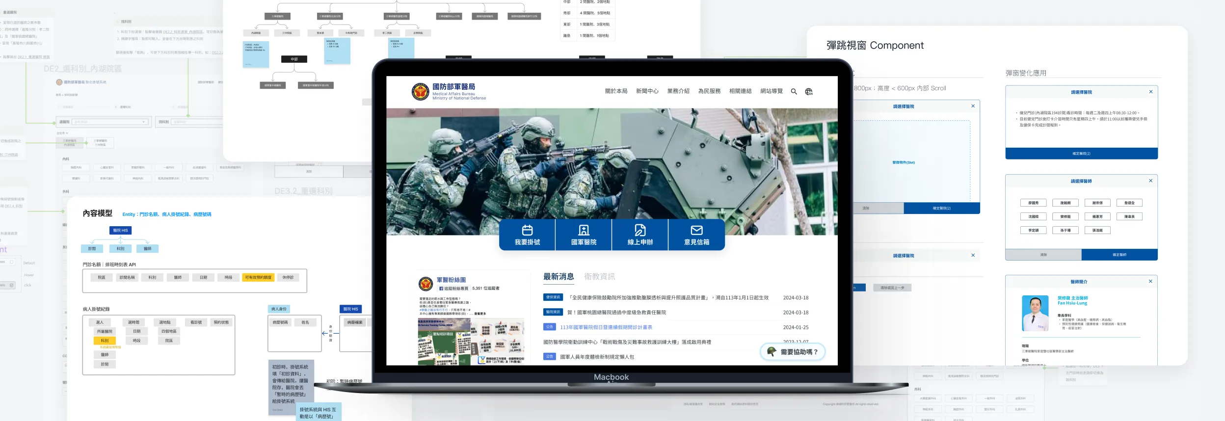 國軍醫院聯合掛號系統在 2023 年因應「南北醫療整合」的願景誕生,整合 14 間國軍醫院,讓使用者在一個系統中,瀏覽跨院區門診;當同一位醫師在跨院區服務時,能在此系統中快速查找並掛號。然該系統在體驗流程中出現許多斷點。我們透過訪談釐清需求,聚焦明確的掛號情境,藉此優化系統流程。